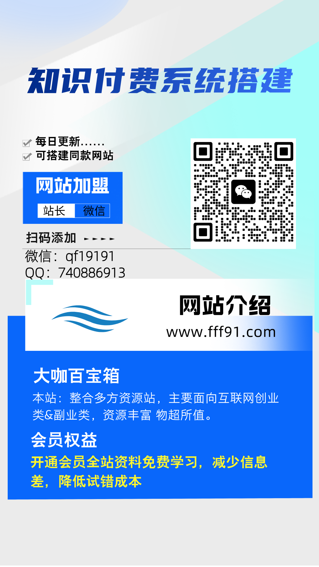 加盟XXX网创,加盟搭建同款知识付费资源网站,实现长期稳定被动收入~